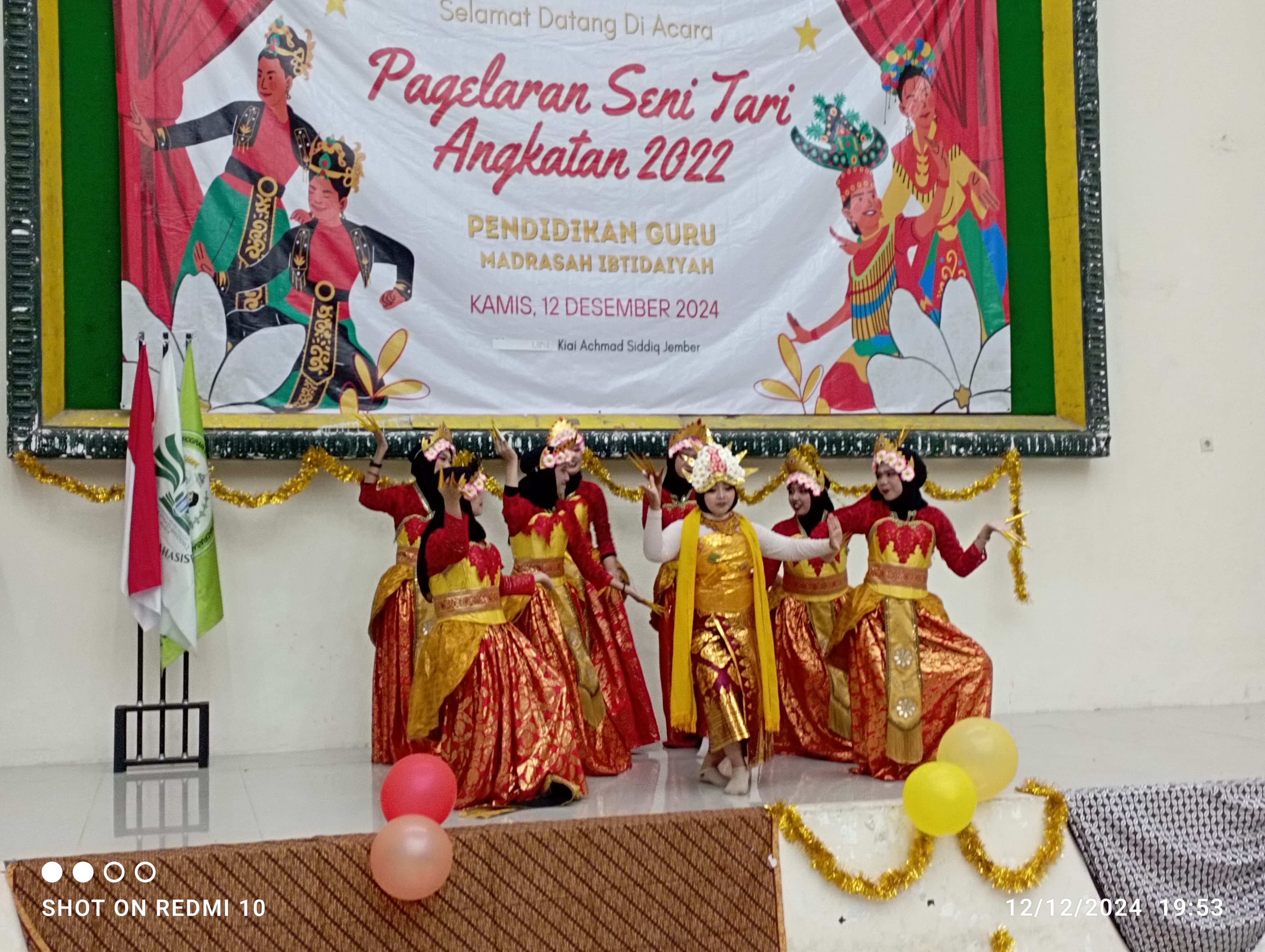 Jember, 12 Desember 2024 – Mahasiswa Program Studi Pendidikan Guru Madrasah Ibtidaiyah (PGMI) Universitas Islam Negeri Kiai Haji Achmad Siddiq (UIN KHAS) Jember sukses menggelar pagelaran seni tari padahari Kamis malam Jumat di Gedung Teater.